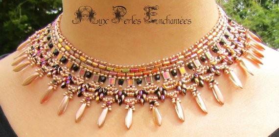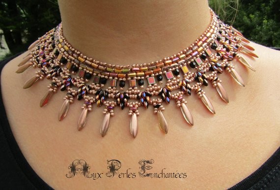 Beading pattern, beading tutorial, beading instructions, beaded necklace, beaded Aztec necklace tutorial, schémas perles, tutoriel, collier