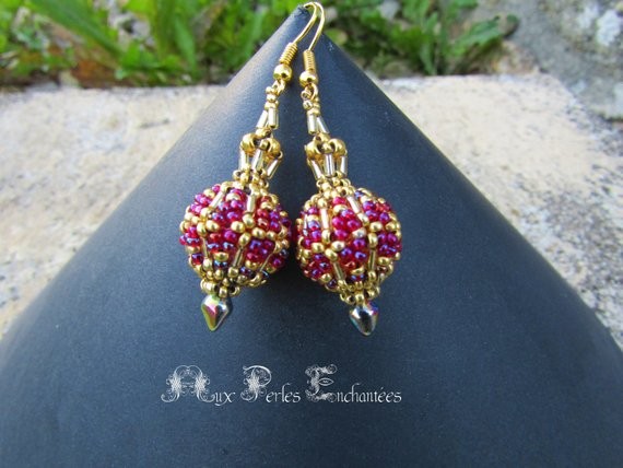 Beading pattern, beading tutorial, beaded Renaissance earrings tutorial, tutoriel perles, schéma perles, boucles d'oreilles