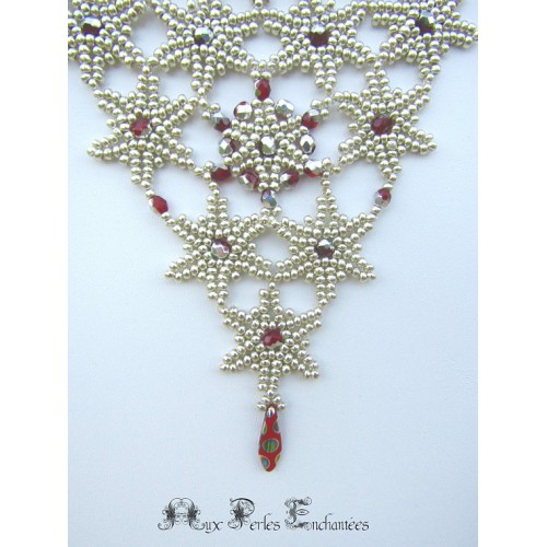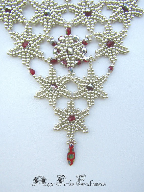 Tutoriel collier, tutoriel perles, schémas collier en perles, schémas perles, instructions collier flocons de neige, noël
