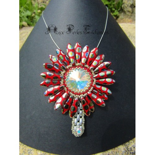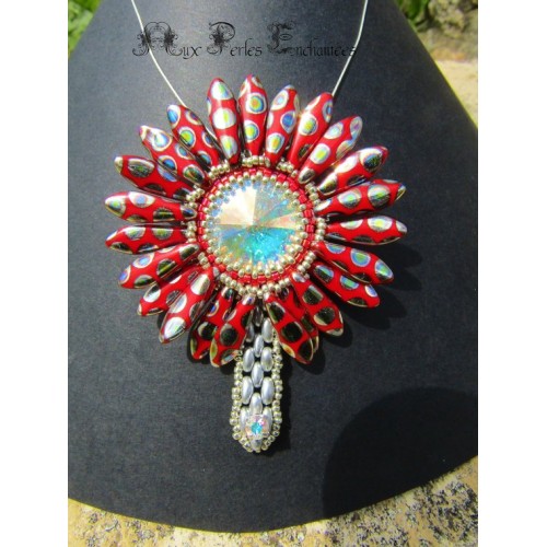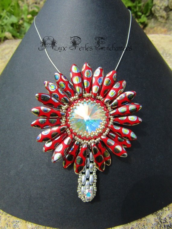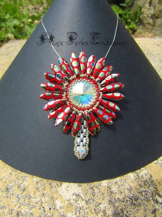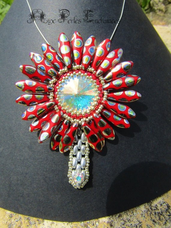 Beading pattern, beading tutorial, beading Picasso flower pendant, beading flower, beading pendant