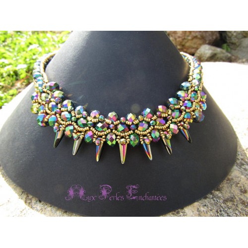 Beading kit, beading pattern, beading tutorial, SPIKY SCARABEE IRIS necklace kit instructions and materials, kit collier, diy, perles, bijou