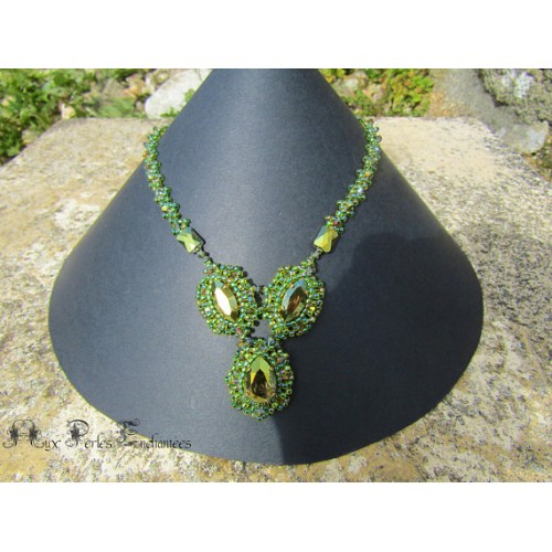 Beading kit, beading pattern, beading tutorial, Beaded iridescent green necklace kit instructions and materials, Kit collier, diy, perles,
